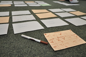 Am Heinrich-Heine Gymnasium in Heikendorf - eine unserer Pilotschulen - war heute praktisches Ausstellungsbauen angesagt: Zuerst mussten die Inhalte auf die drei Regale verteilt werden, das lässt sich mit vielen Zetteln und ordentlich Platz einfach immer noch am einfachsten machen. Welches Thema kommt wohin? Welche Tafeln gehören zu welchen Exponaten? Macht die Reihenfolge so Sinn? Kann man das Exponat in dem Fach überhaupt sehen? Viele Fragen, viel Diskussion, aber am Ende eine Lösung mit der (fast) alle zufrieden sind.